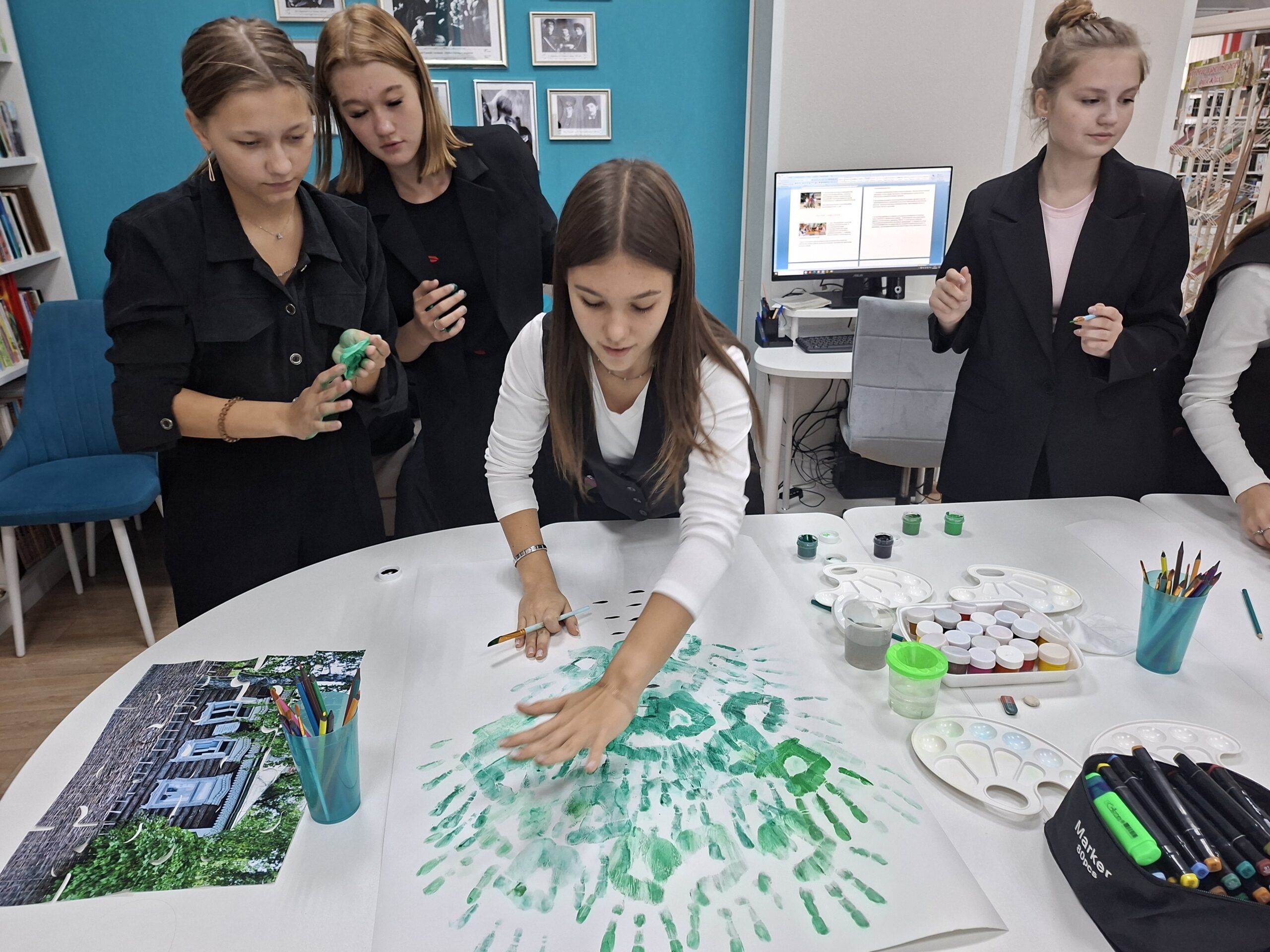 В завершение мероприятия старшеклассники нарисовали русскую берёзу, которая олицетворяет Родину в творчестве великого Рязанского поэта.