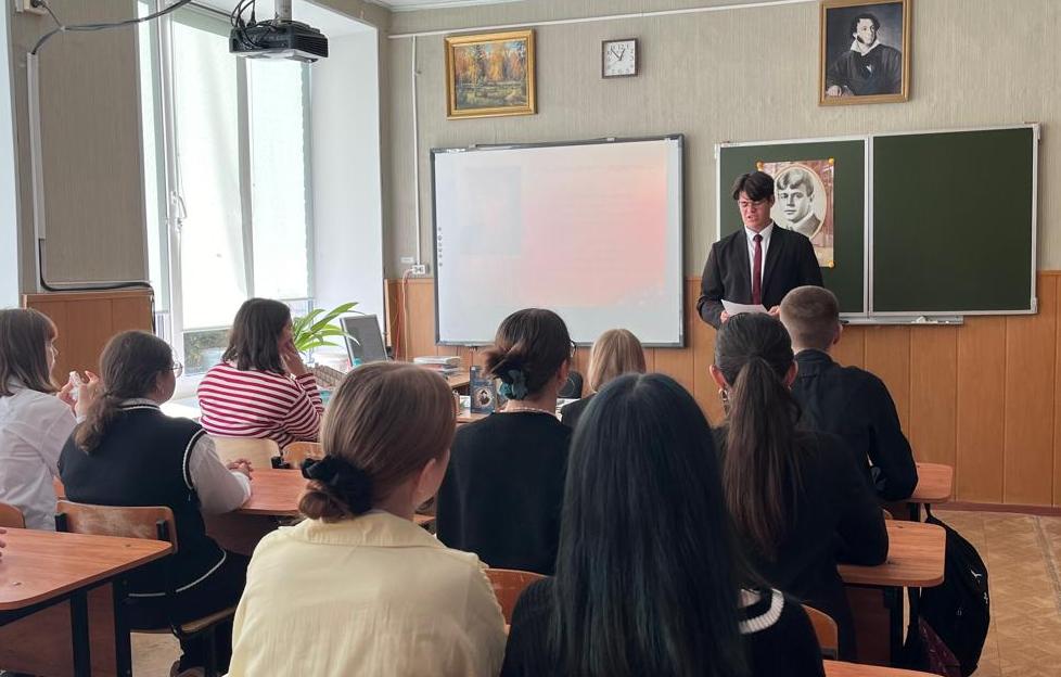 Ведущие познакомили школьников с биографией известного русского поэта и его творчеством.