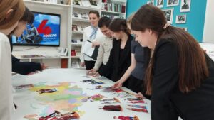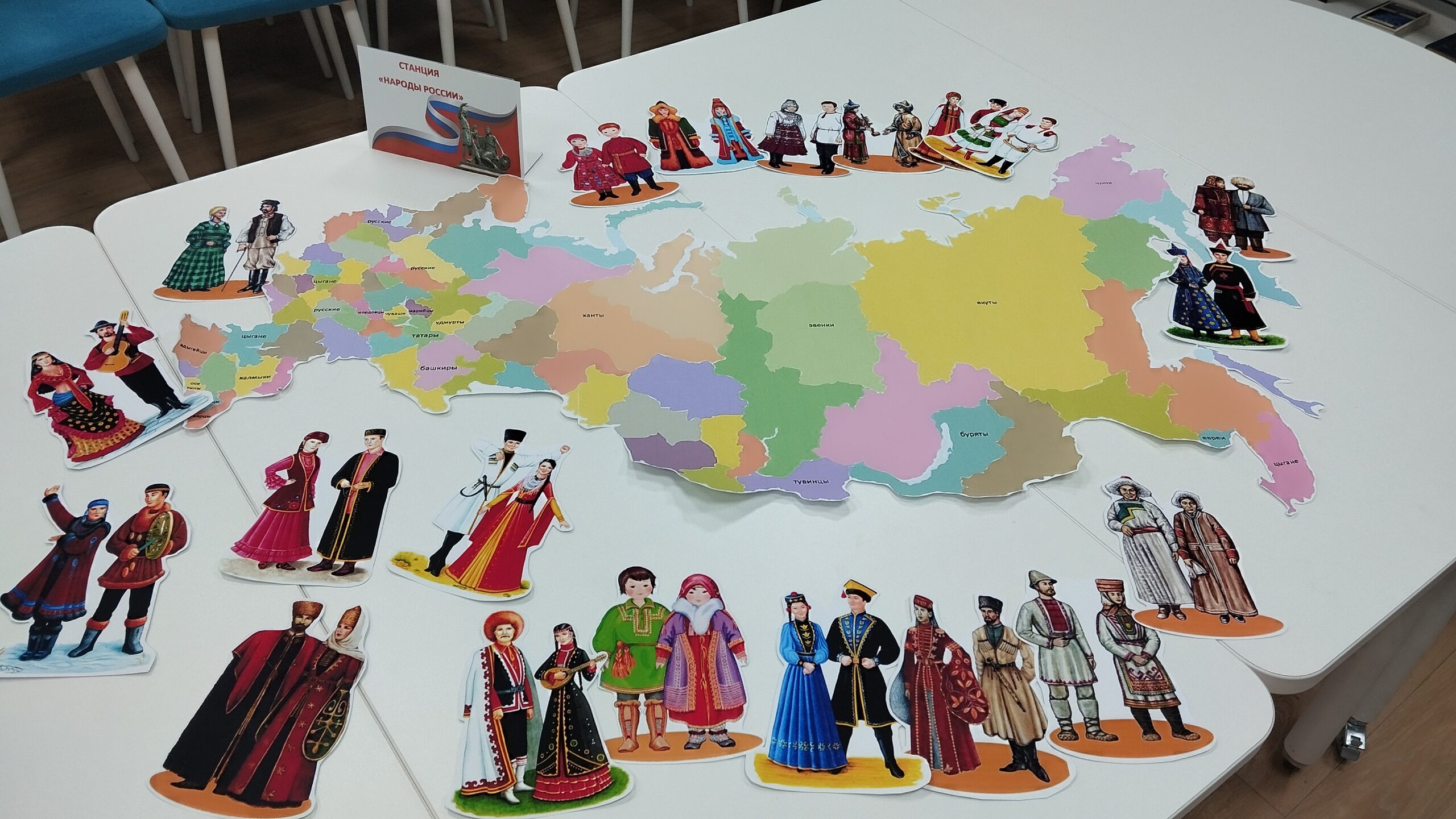 Ребята разделились на две команды и проследовали по станциям: «Историческая», «Игровая», «Филворд единства», «Народы России», «Народные промыслы», «Национальная кухня».