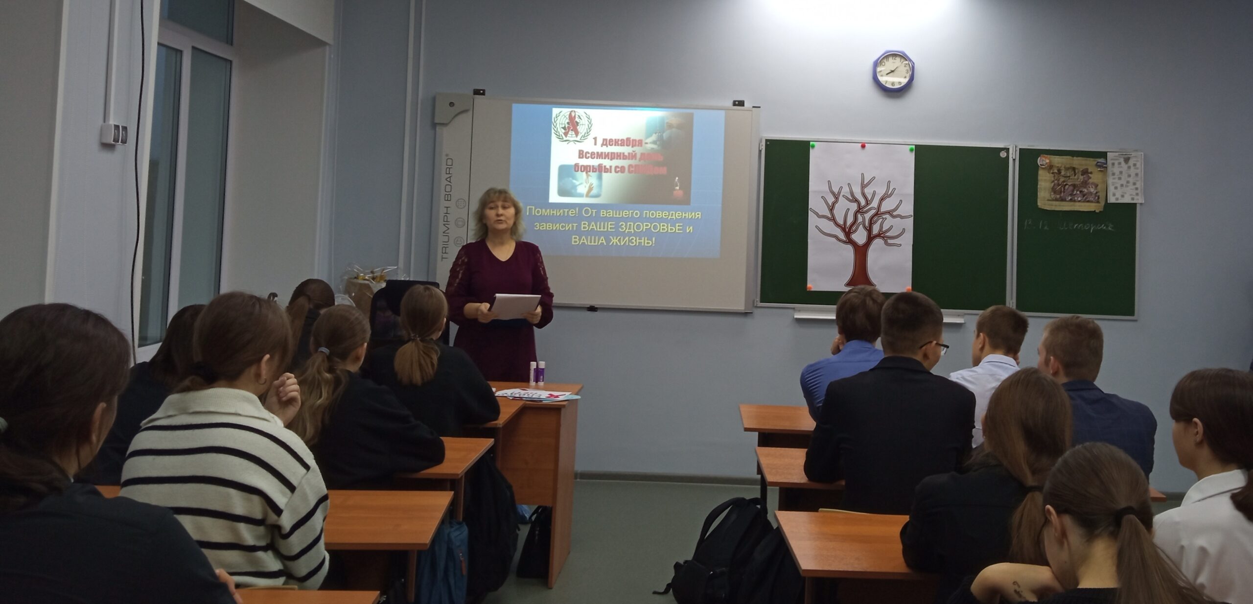 В ходе встречи старшеклассники узнали, что такое ВИЧ-инфекция, чем она отличается от СПИДа. Получили информацию о путях заражения ВИЧ и возможности инфицирования, о мерах профилактики. Школьники приняли участие в традиционной акции «Красная ленточка» и сделали «Дерево жизни» — Международный символ сострадания, поддержки и надежды на будущее без СПИДа.